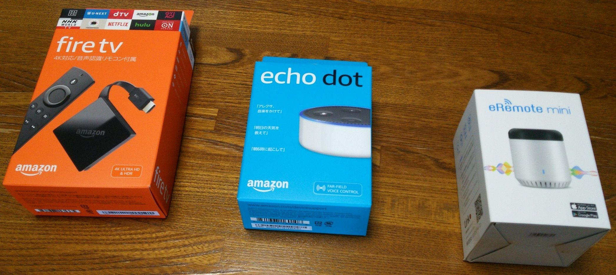 写真左は、fire tv 4K・HDR です。amzonプライム会員の特典で見ることができるprimeビデオをTVで見るために購入しました。
