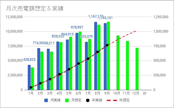 それでは、今日9/30および今月の発電量です。(各発電所の仕様はこちらです)