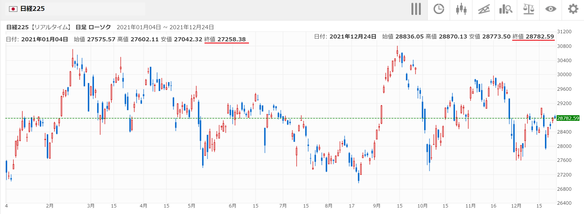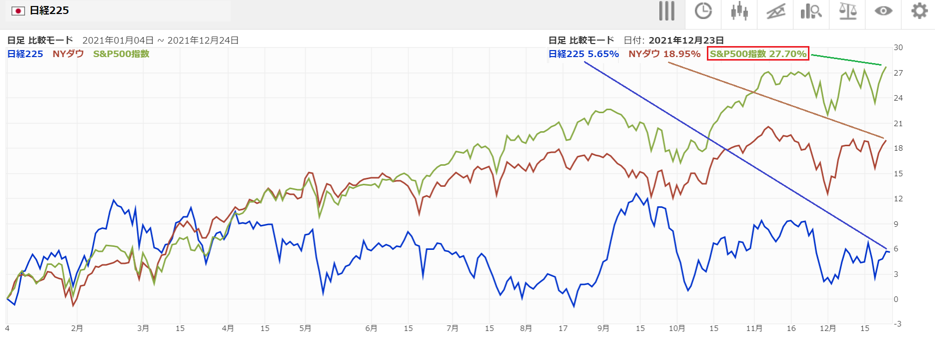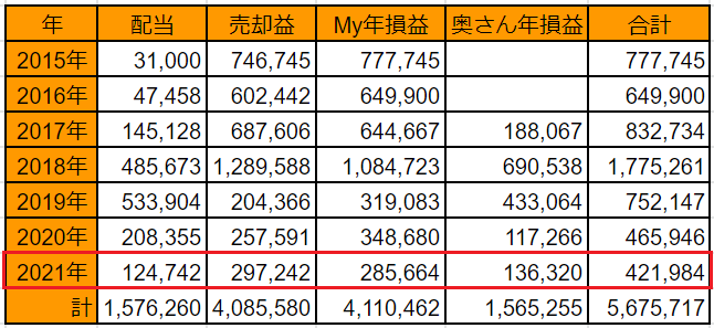 今日12/30は証券取引所の大納会の日ですので、今年2021年の株取引き結果を確認することにします。