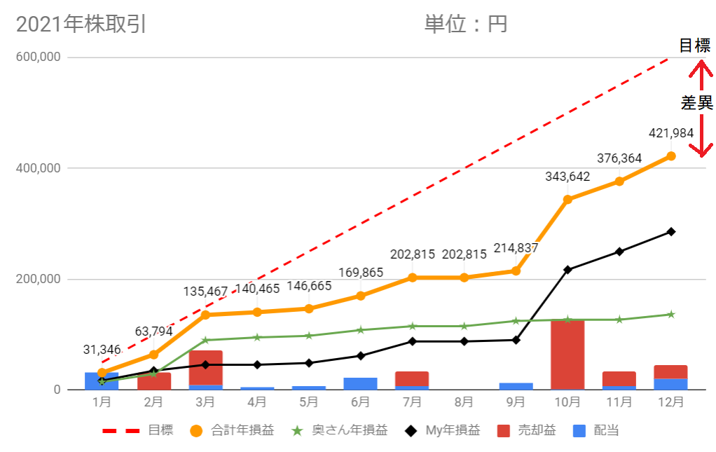 残念ながら目標(60万円/年)には届きませんでした。