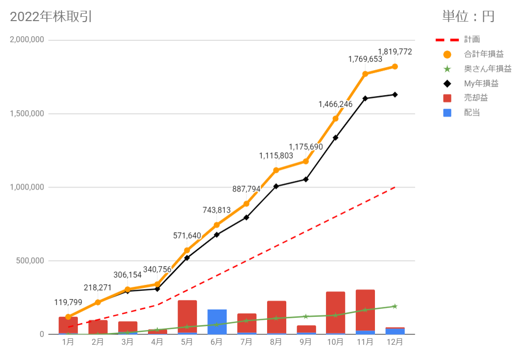 5年間の累計は、1181.4万円になり、こちらも想定の1182.5万円とは誤差の範囲と思います。