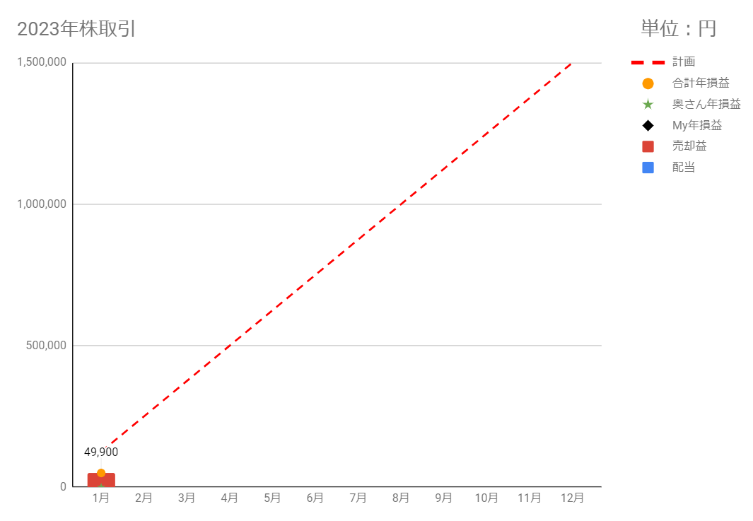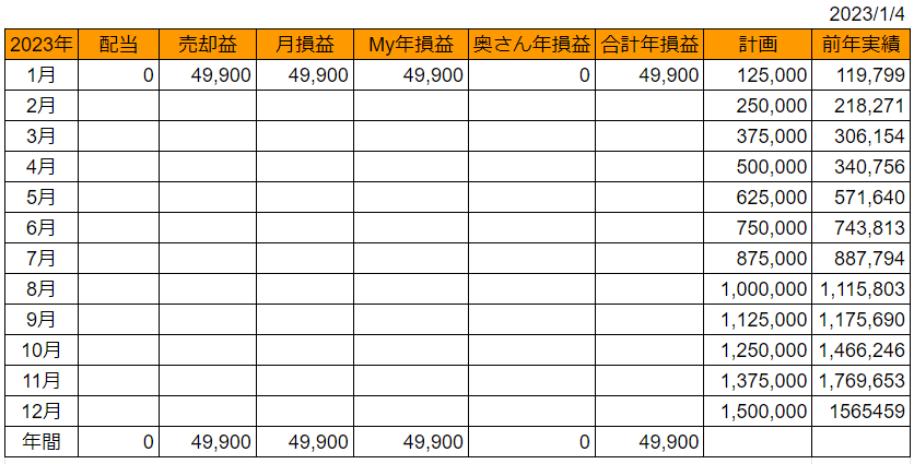 今日は利確する株がありませんでしたが、12/30の約定分があり、今月の確定損益(税引前)は+49,900円になりました。