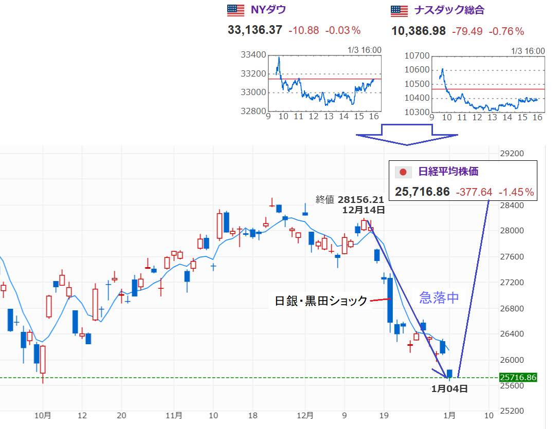 前回12/29、日経平均が12/14の終値から 2,062円 も急落したことをお伝えしました。