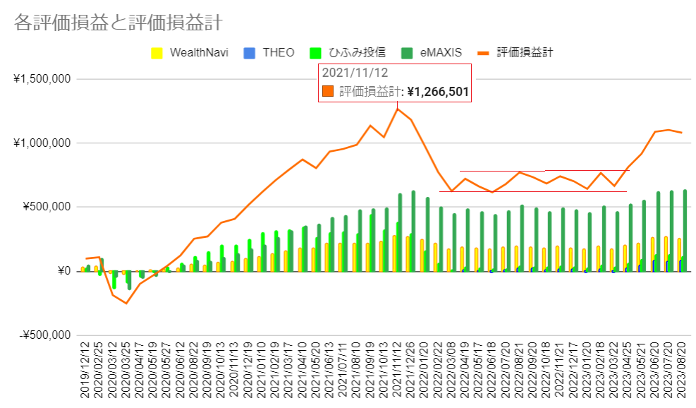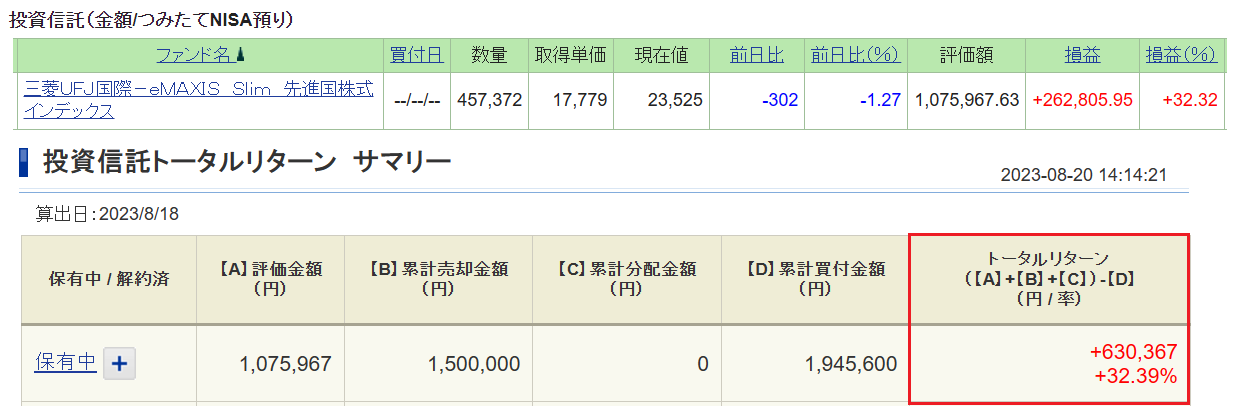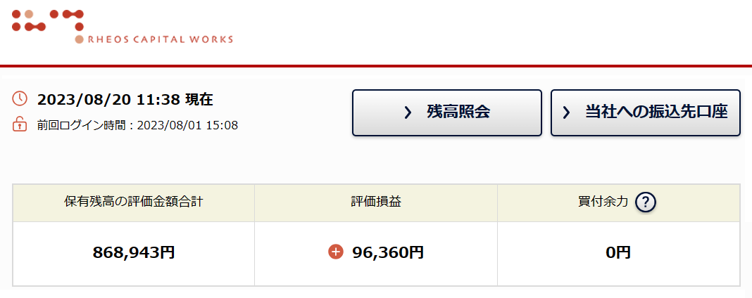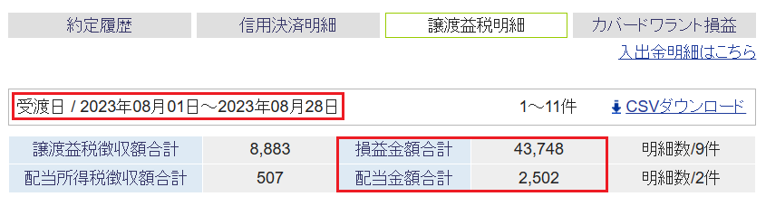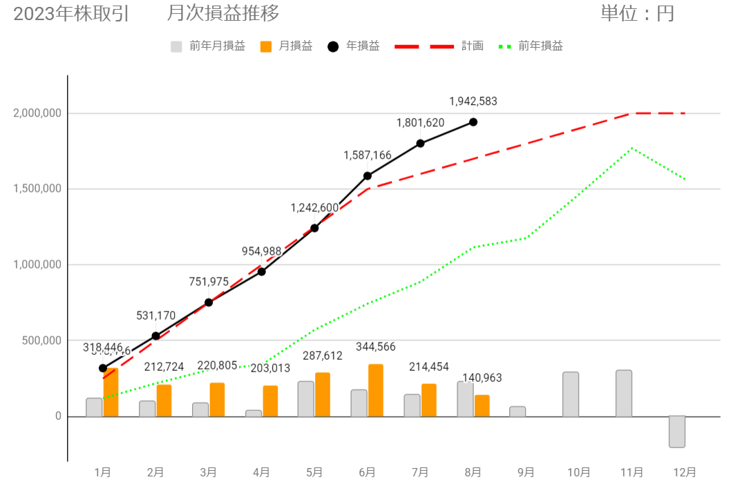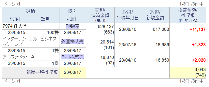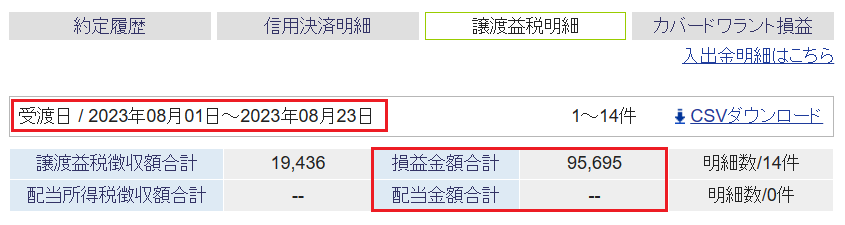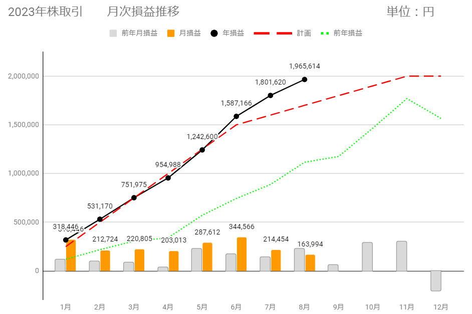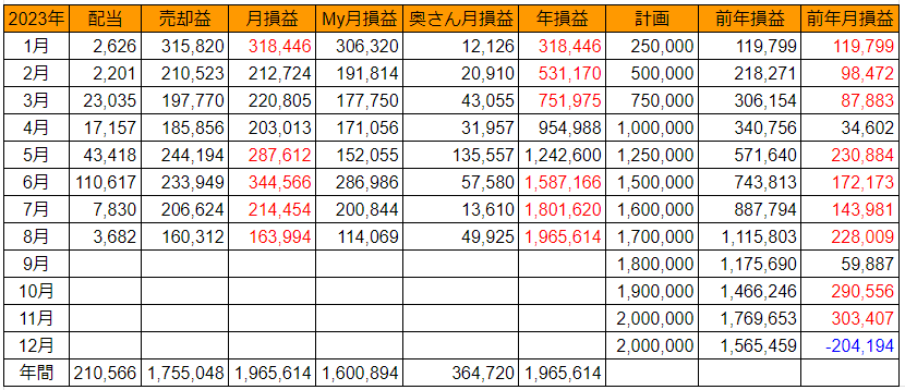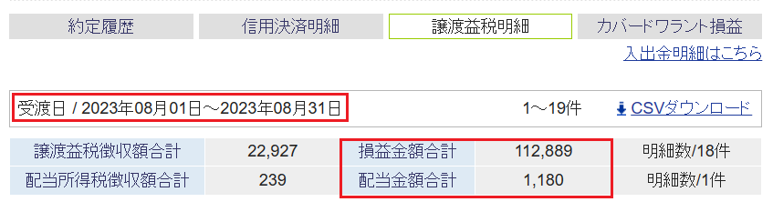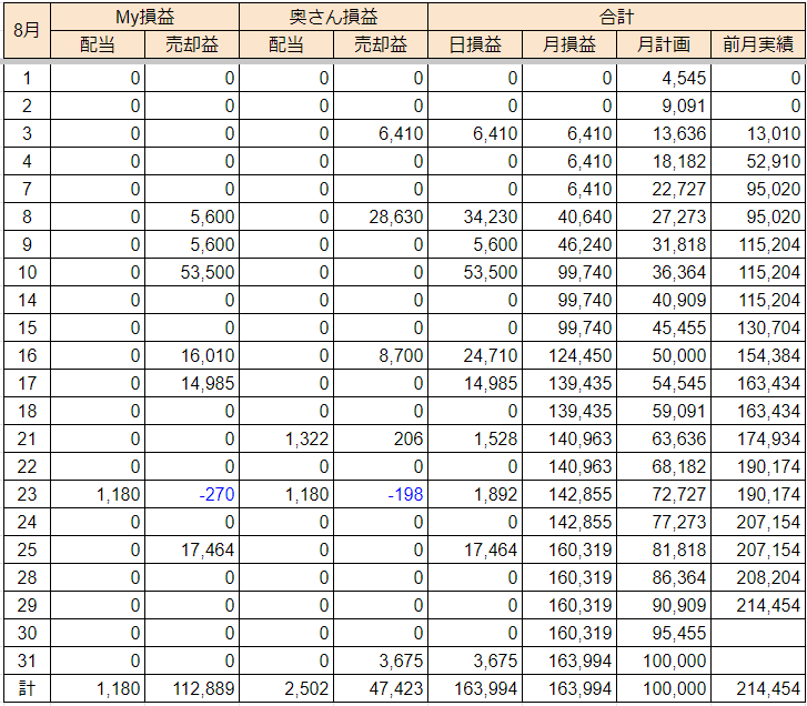 8/23以降、上記以外の売却はなく、8月の確定損益(税引前)は+114,069円です。