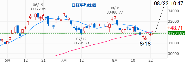 昨日8/30の日経平均は106.49円高と3日続伸し 32,333.46円 で引けました。
