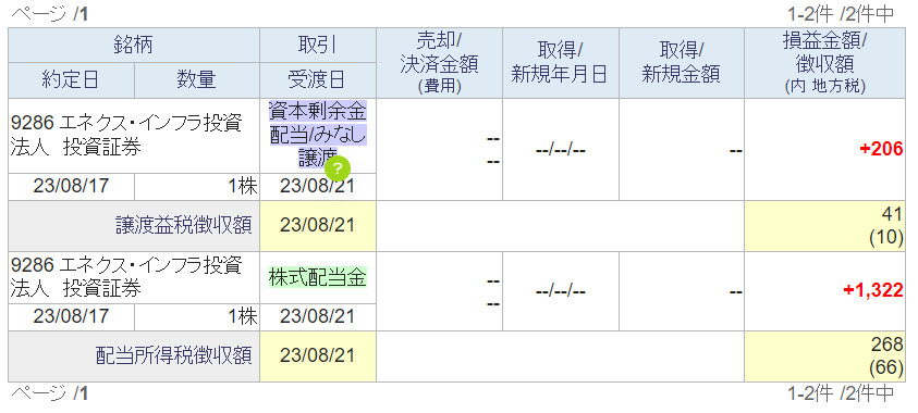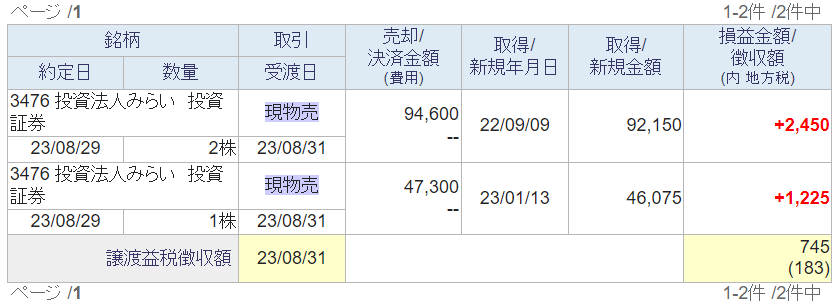 奥さんは8/29にJリートの 投資法人みらい 3株を利確し