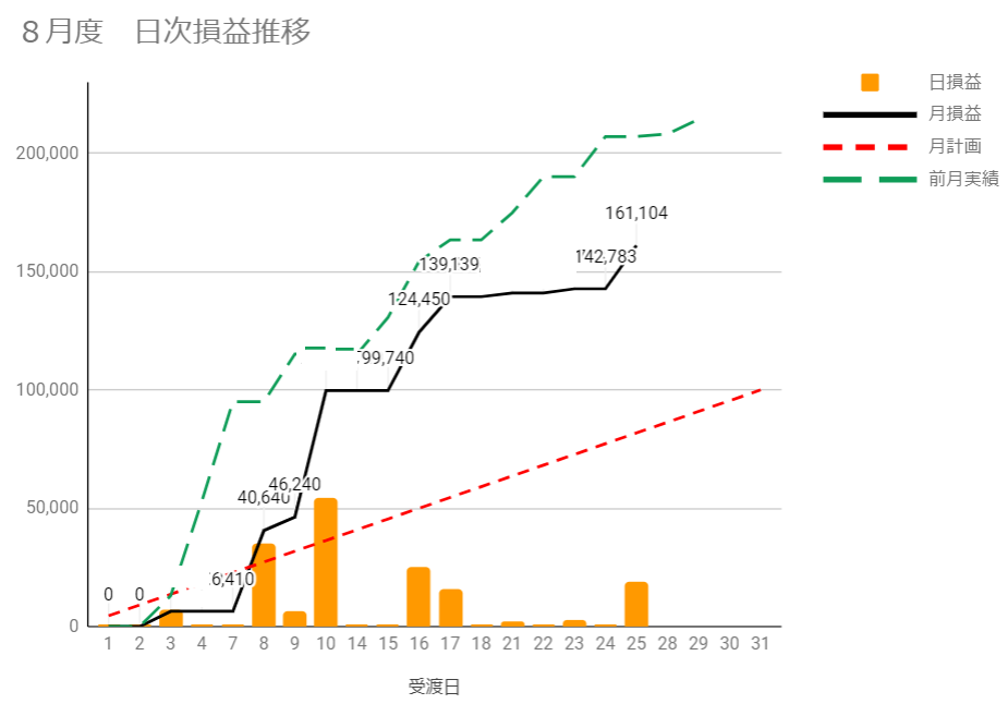 8/29は今月受け渡しの最終取引日でしたので、8月度の確定損益がFixしました。