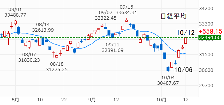 日別に見ると、10/6の2,051kWh(想定比+797kWh)が最大で、最小は昨日10/15の303kWh(想定比 -951kWh)でした。