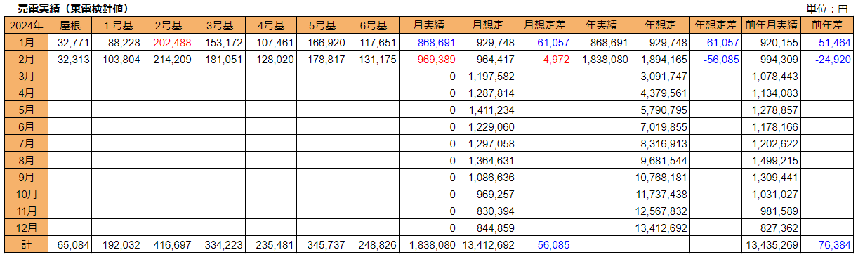 発電所別の発電量は2号基の5,213kWhが最大です。