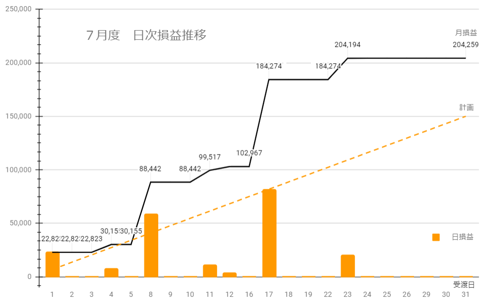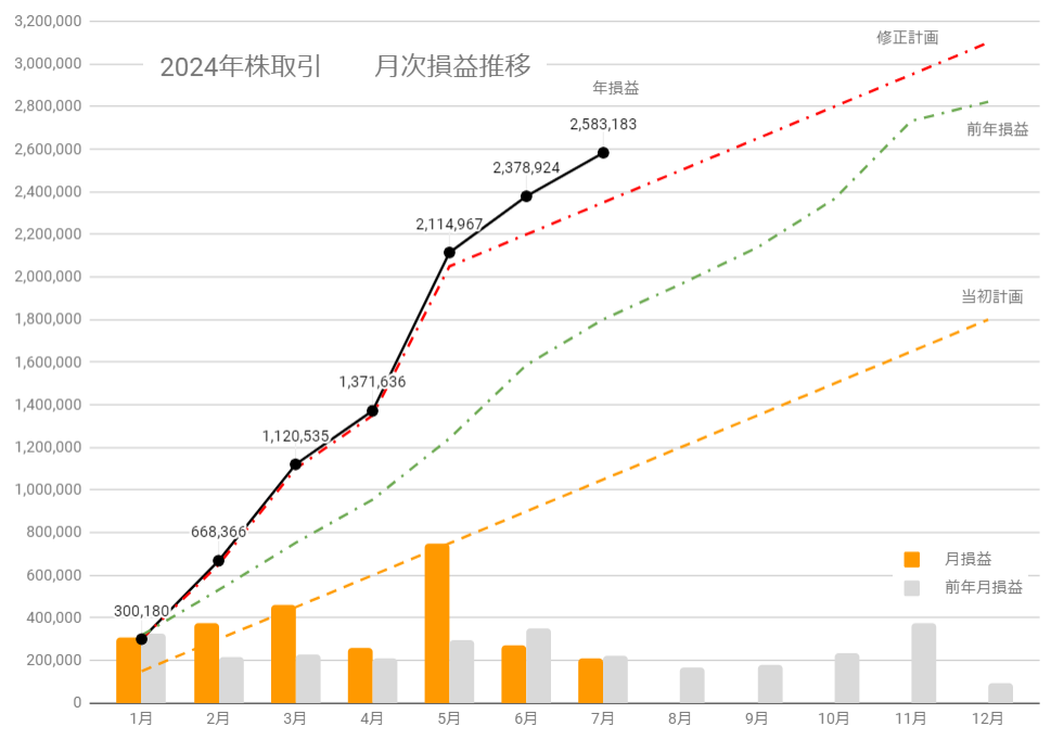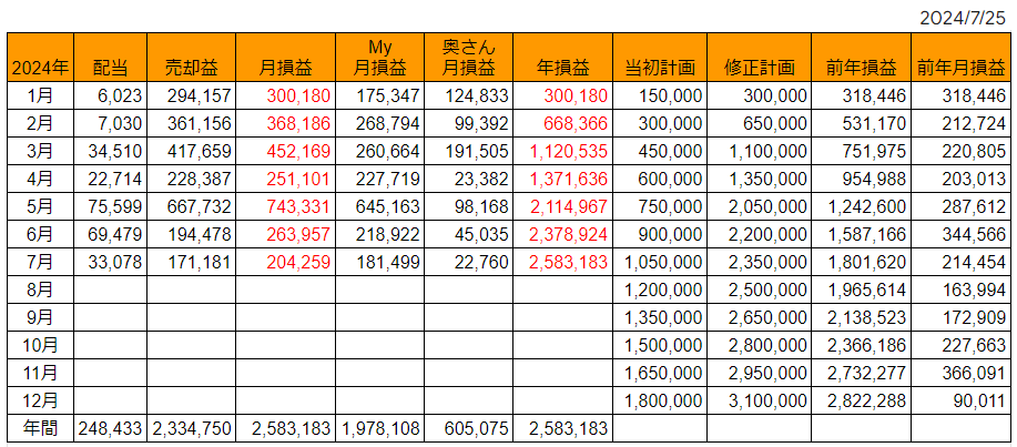 6月に続き7月も借金(想定比マイナス)をかなり返済しましたが、今年の累計はどうでしょうか。