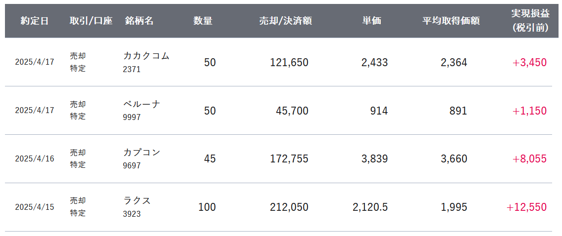 4/25にABEJA、TWOSTONE&Sons、南都銀行を利確し