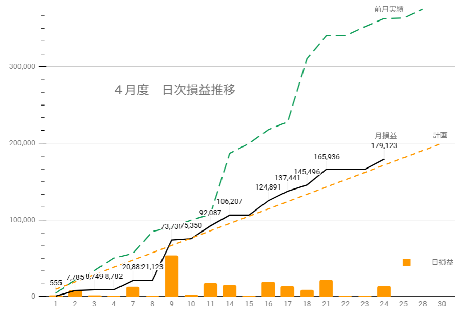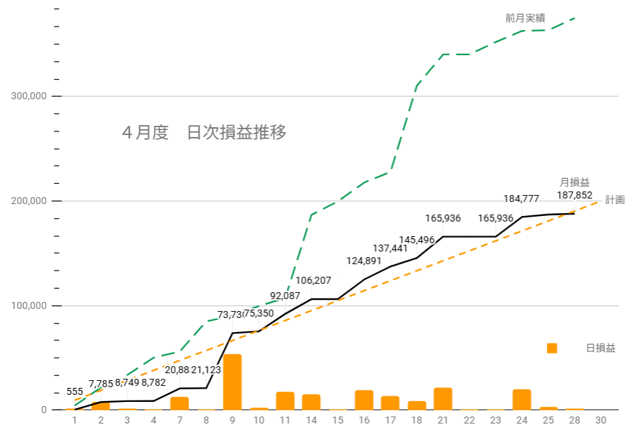 これで4月の合計確定損益は+201,739円です。