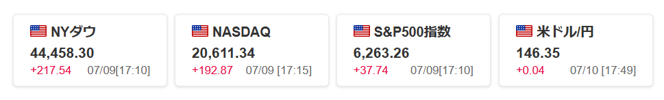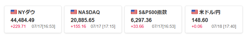 昨日の米国株はNYダウが下落したもののNASDAQとS&P500は上昇しています。