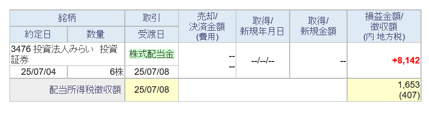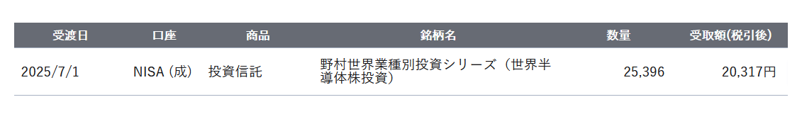 これに新NISA口座の配当↓を加えた今月のMy確定損益(税引前)は +504,170円 です。