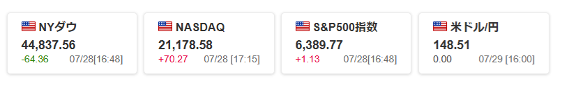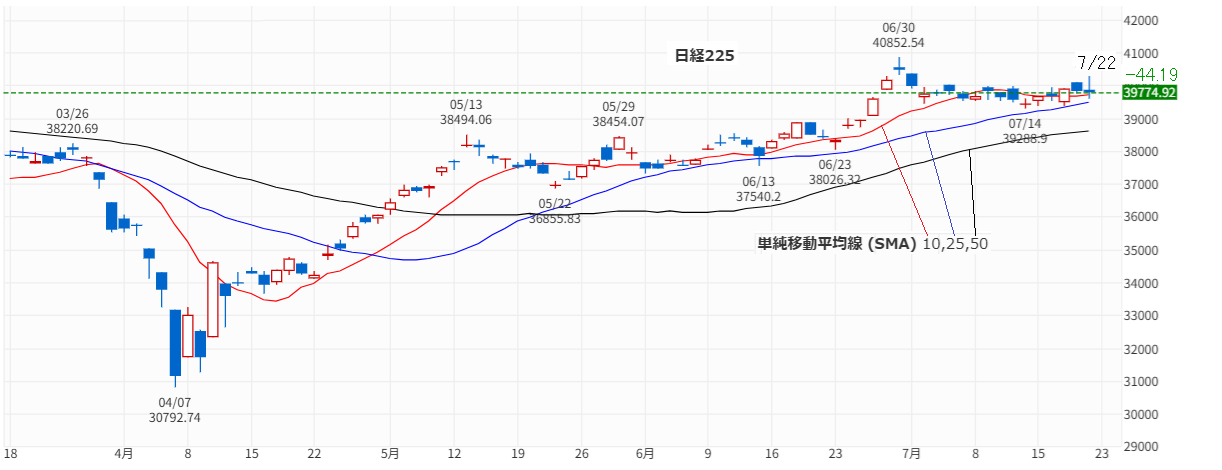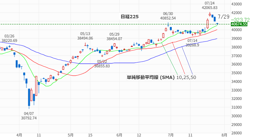 日経平均は7/23~24の2日間で2,000円以上も急ピッチで上昇した反動で7/25と7/28は続落しましたが今日7/29はどうでしょうか。