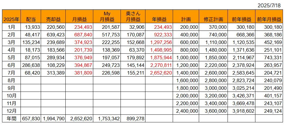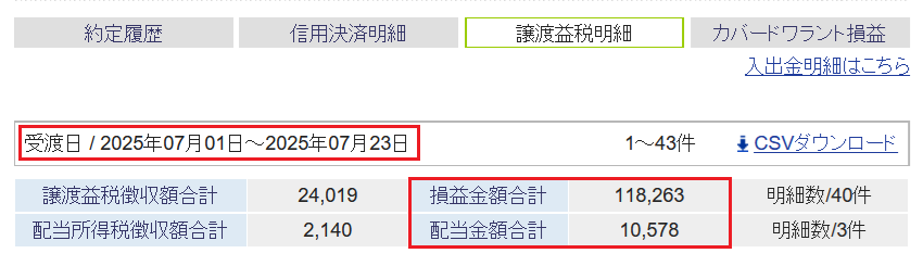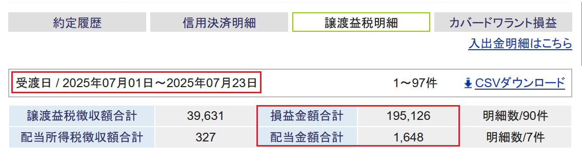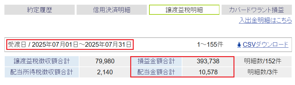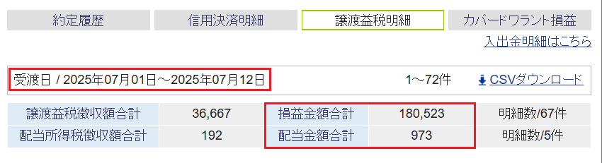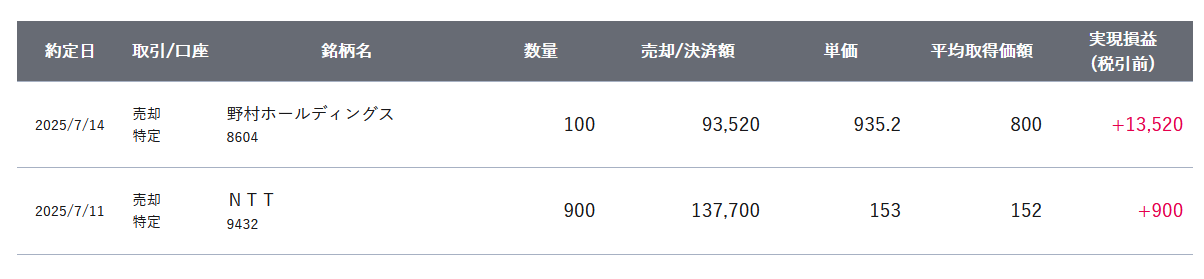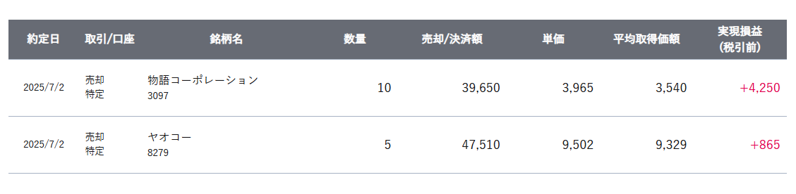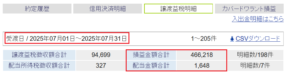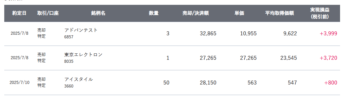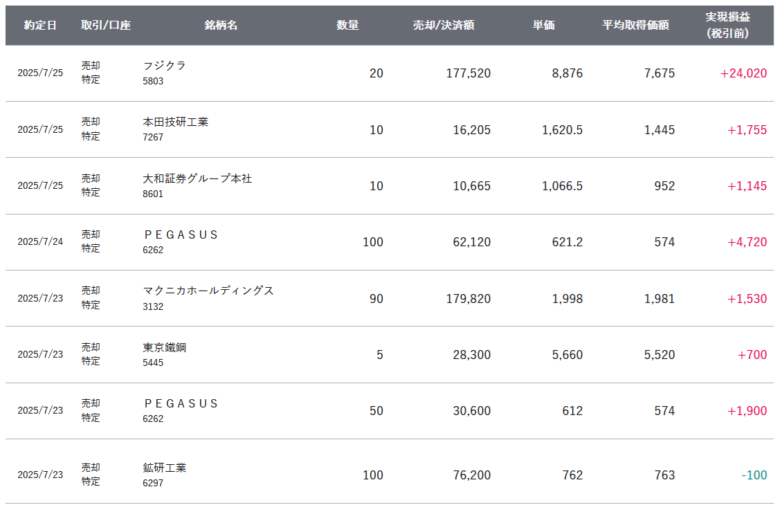 これで昨日7/28約定分までの特定口座のMy確定損益(税引前)は+467,866円になりました。