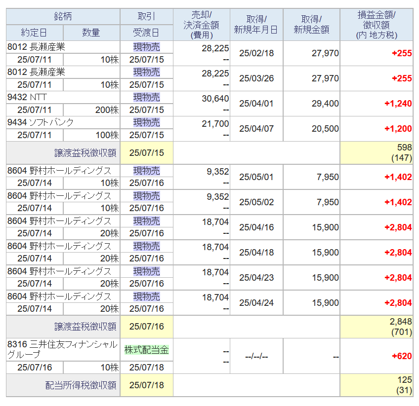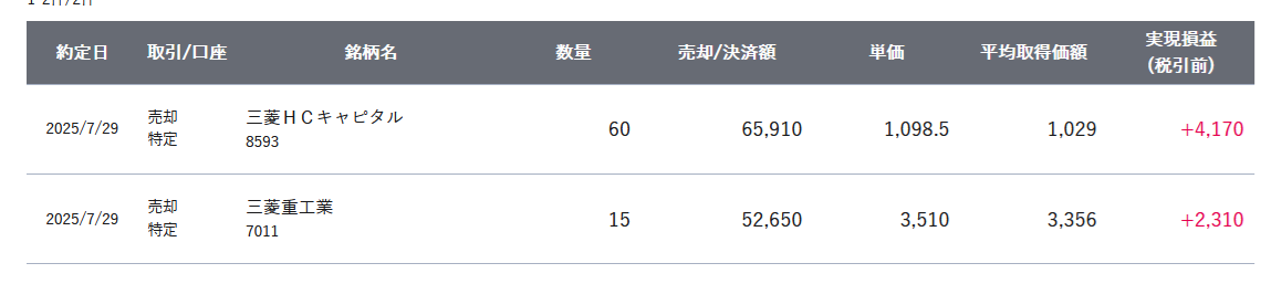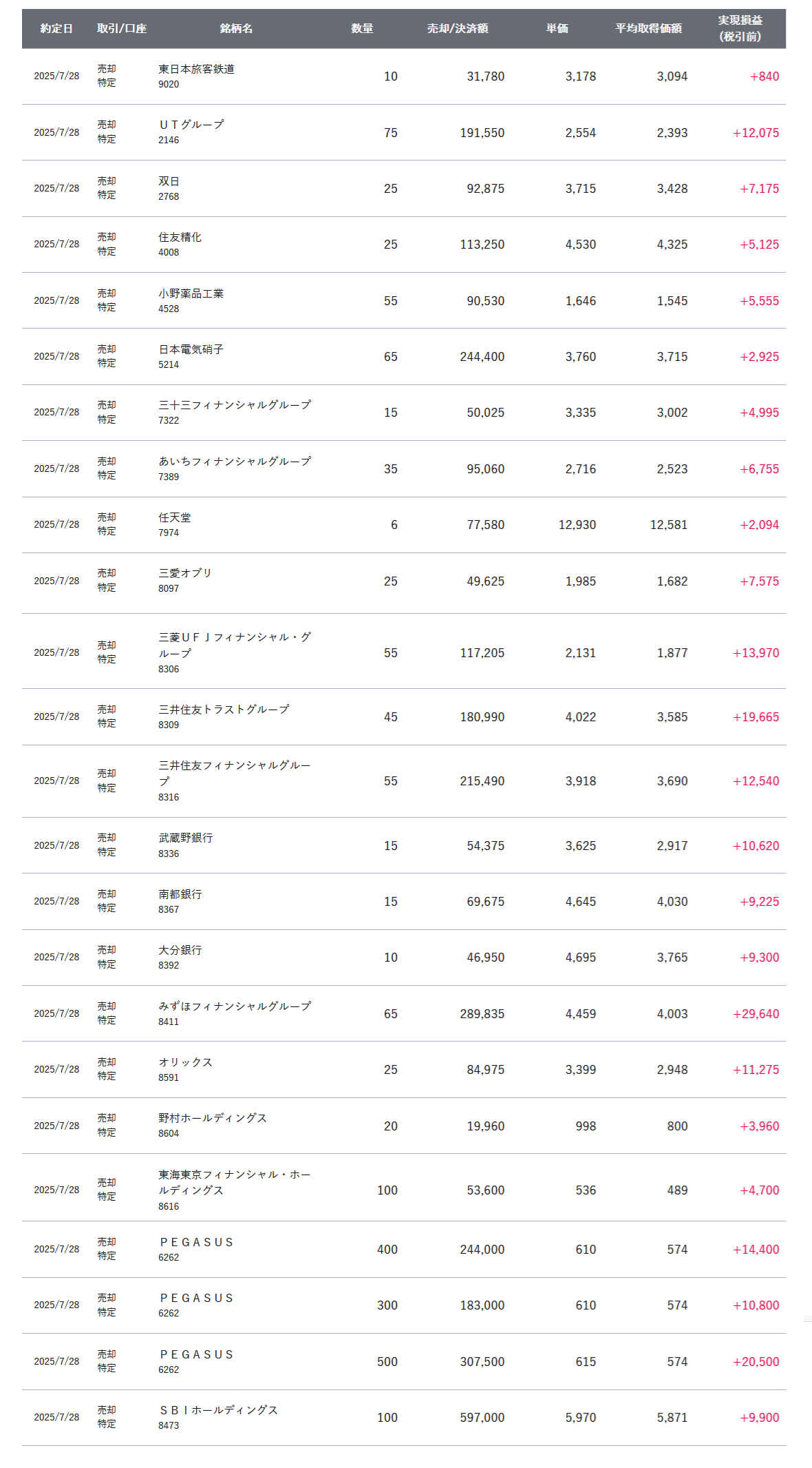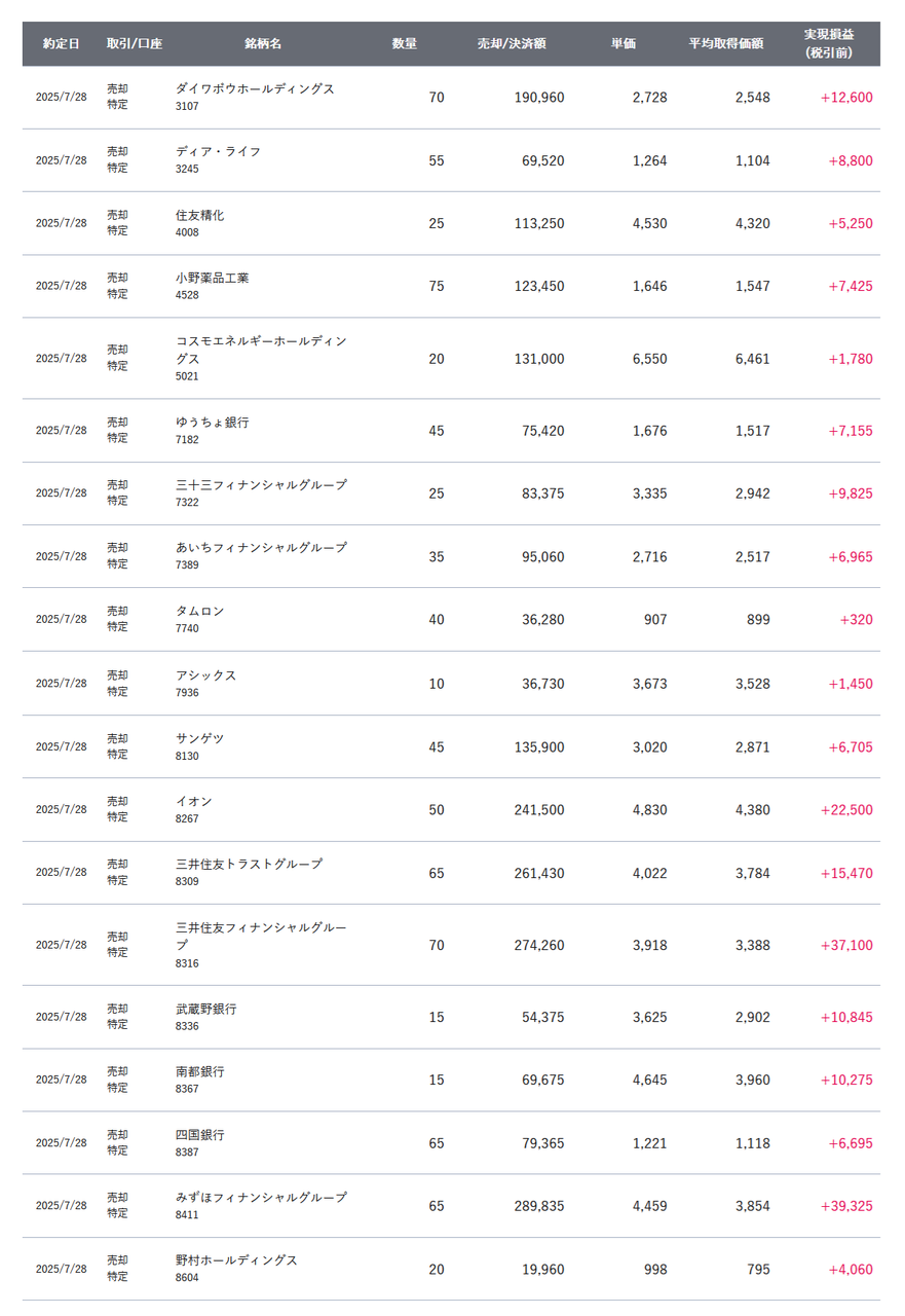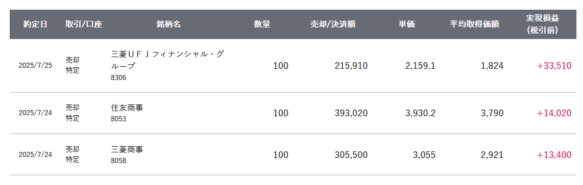 7/24~25は住友商事、三菱商事、三菱UFJを利確しました。