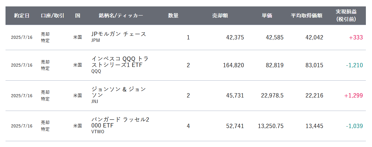 奥さんも現金比率を高めるため高値圏の個別株を利確することにしました。