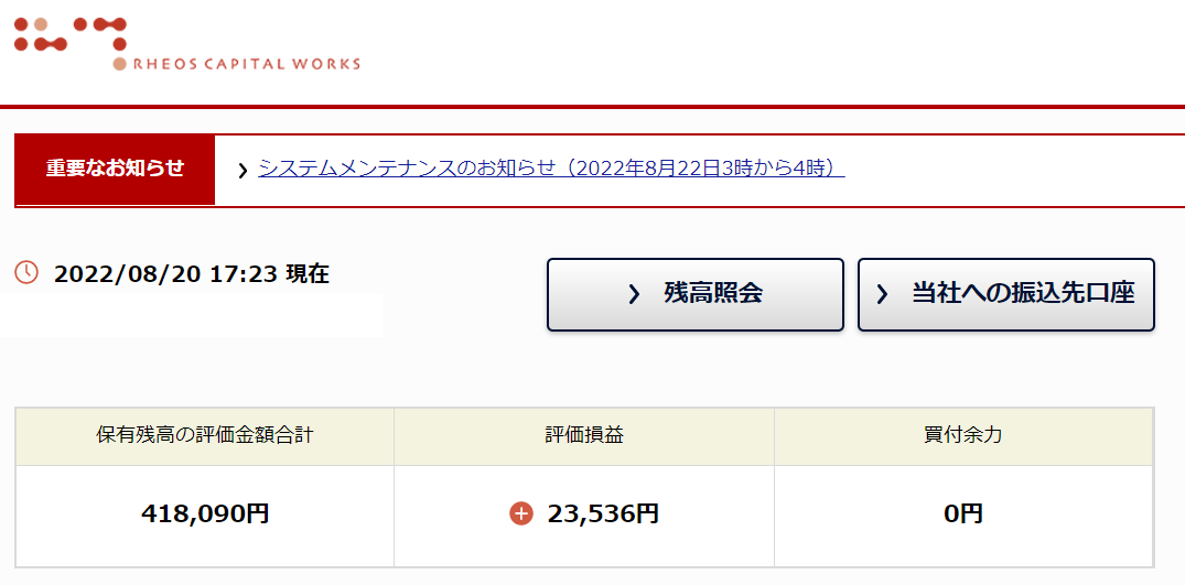 画面では評価損益+45,488円になっていますが、途中4回出金して元金は15万円ですので、配当を含む評価損益は +197,500円 (=347,500-150,000)です。