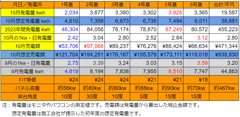 10/1~15の合計発電量は想定を 773kWh 上回る19,587kWhでした。昨対は +3,602kWh に達しました。