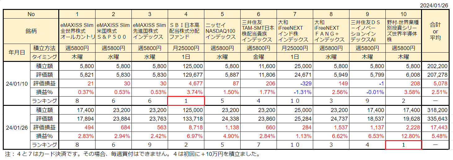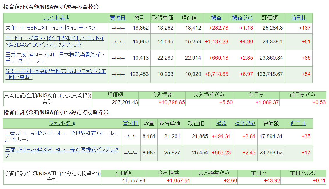 My NISA口座・投資信託の状況です。