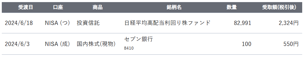 これにNISA口座の配当を加えたMy確定損益は +218,922円になりました。