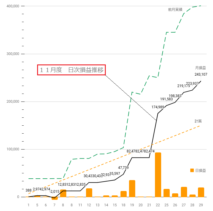 これで今月の合計損益は+243,107円になりました。(^^♪