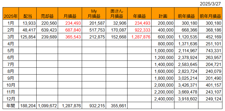 3月迄の年損益は+128.7万円です。