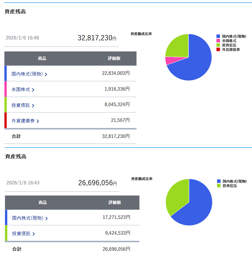 下記は証券口座の資産(上はMy口座、下は奥さんの口座)です。