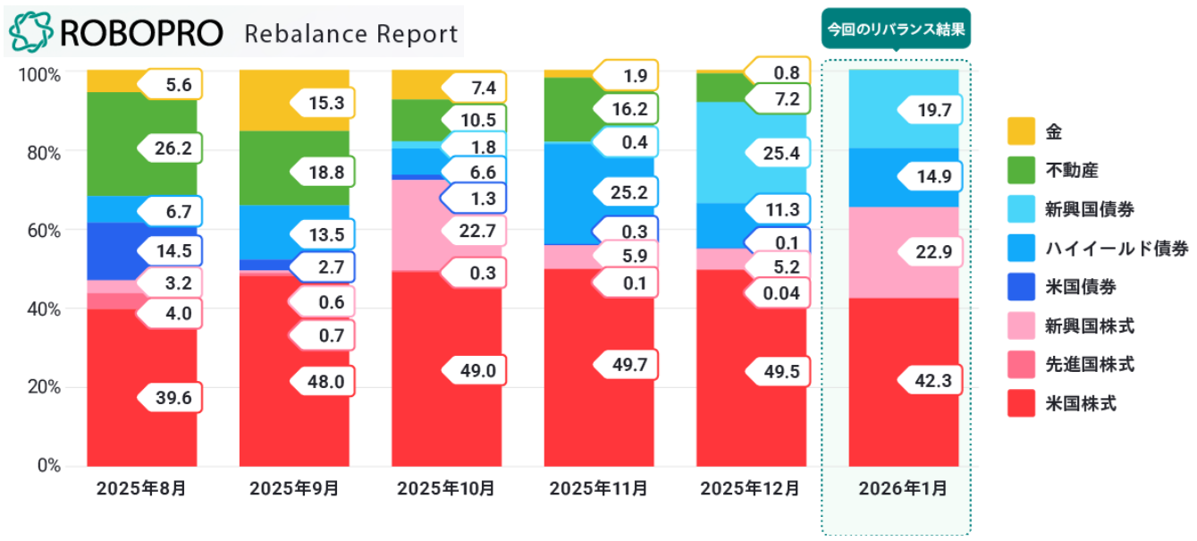 国内株の売却はまだありませんが、ロボプロfolioの定期リバランス(毎月末)