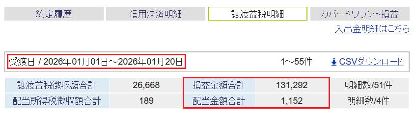 今月の特定口座のMy確定損益(税引前)は+132,444円です。