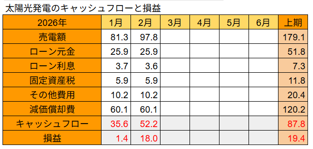 それでは太陽光発電の損益をチェックします。