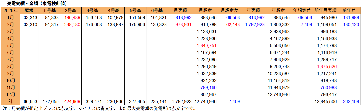 まずは、2月度の売電実績をチェックします。