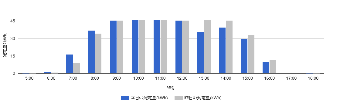 2号基の時間帯別の発電量です。13時台が少し落ちました。