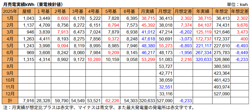 発電所別の発電量は2号基の7,569kWhが最大でした。