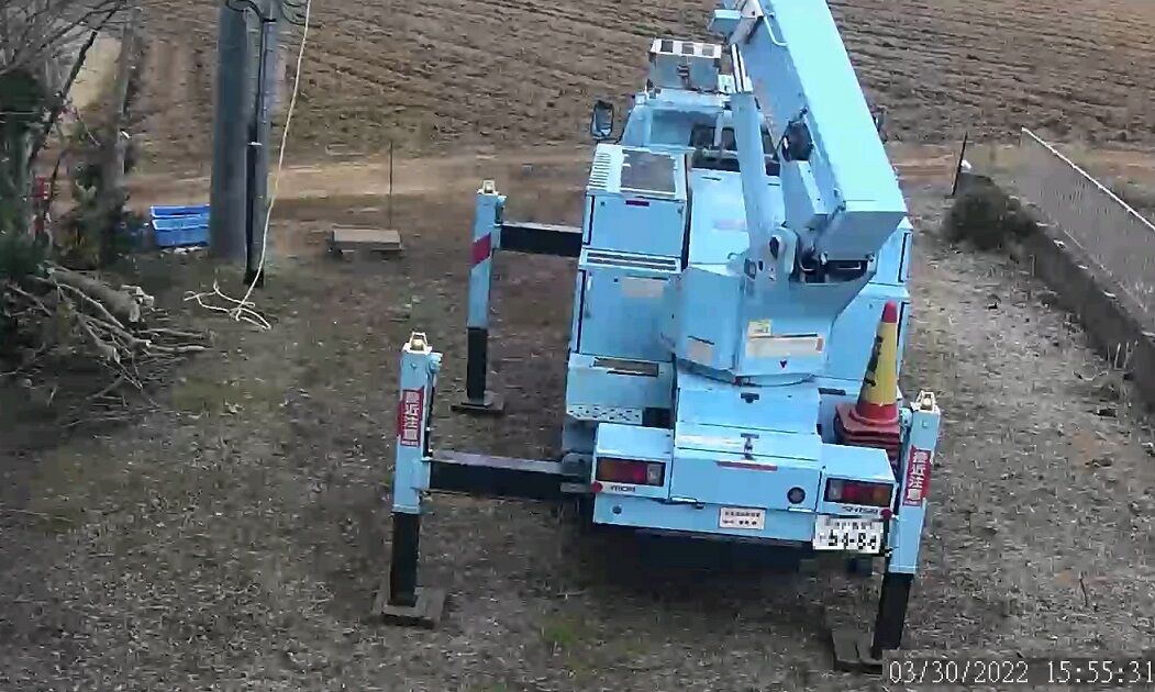 それから東電の電柱工事を待っていましたが、先日3/29、ようやく電柱工事が始まりました。