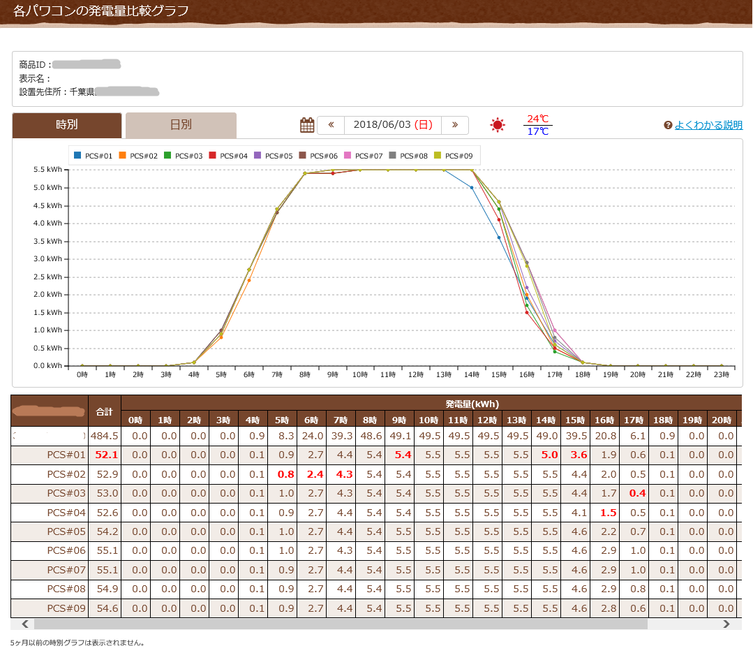 5号基の発電量は、9/4から4号基の値を仮登録していましたが、5号基の測定値に修正しました。そのため9/17迄の発電量は19,380kwhから20,947kwhに増えました。(^^♪