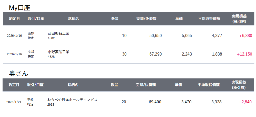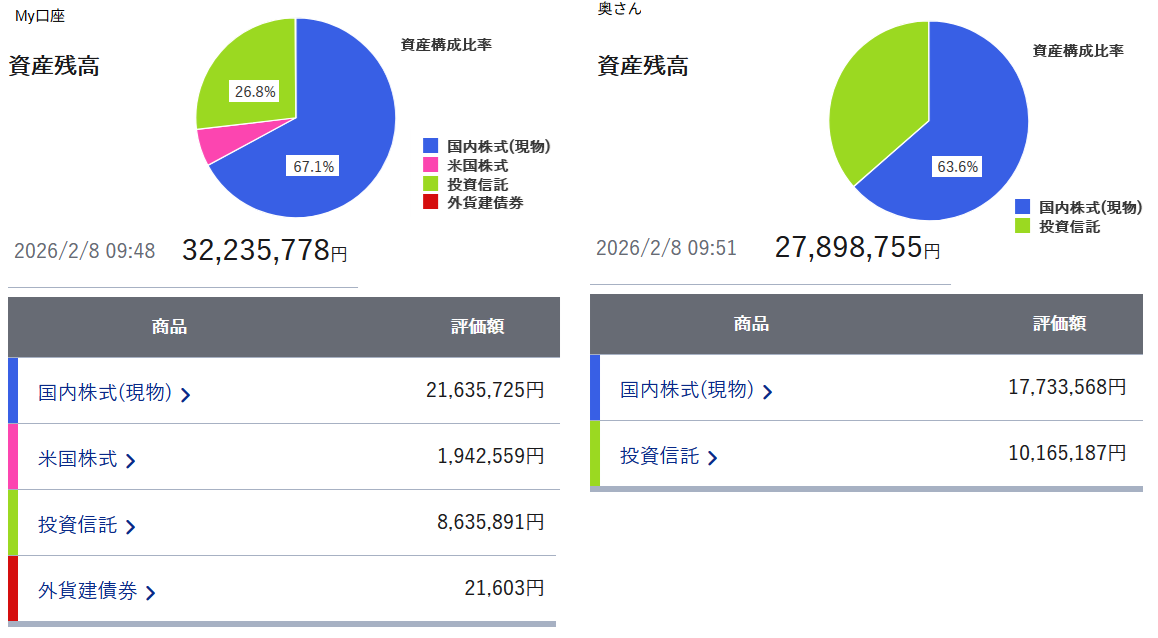 注:My口座は高配当銘柄を7割(長期保有)、グロース銘柄を3割、奥さんの口座は高配当銘柄9割、グロース銘柄1割を目安にします。