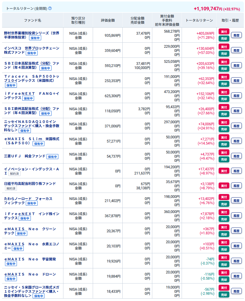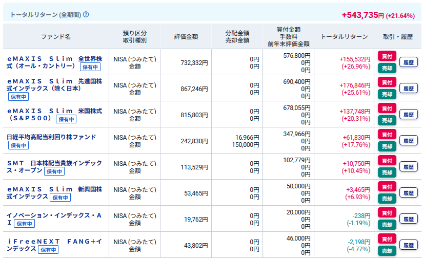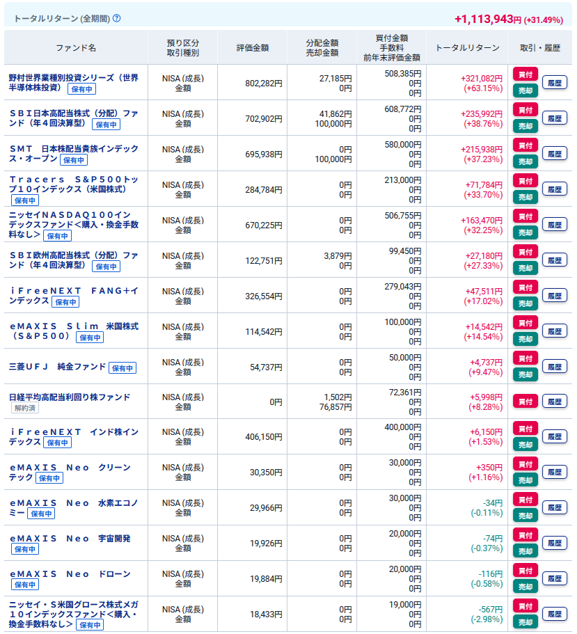 投資信託は若干トータルリターンが減少しました。(^_^;)