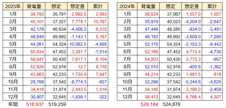次は、2025年間の発電量です。
