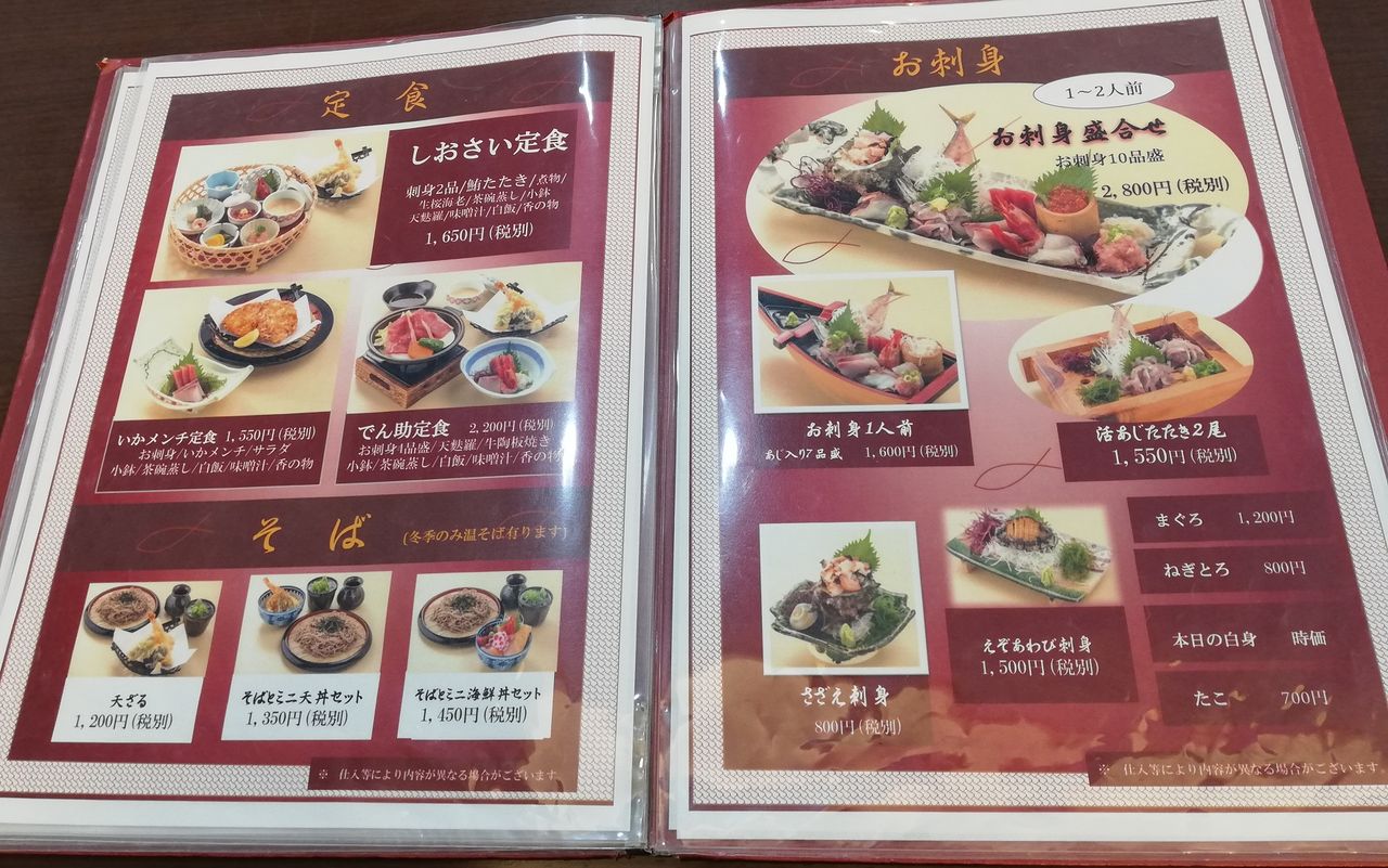 でん助茶屋のメニューです。