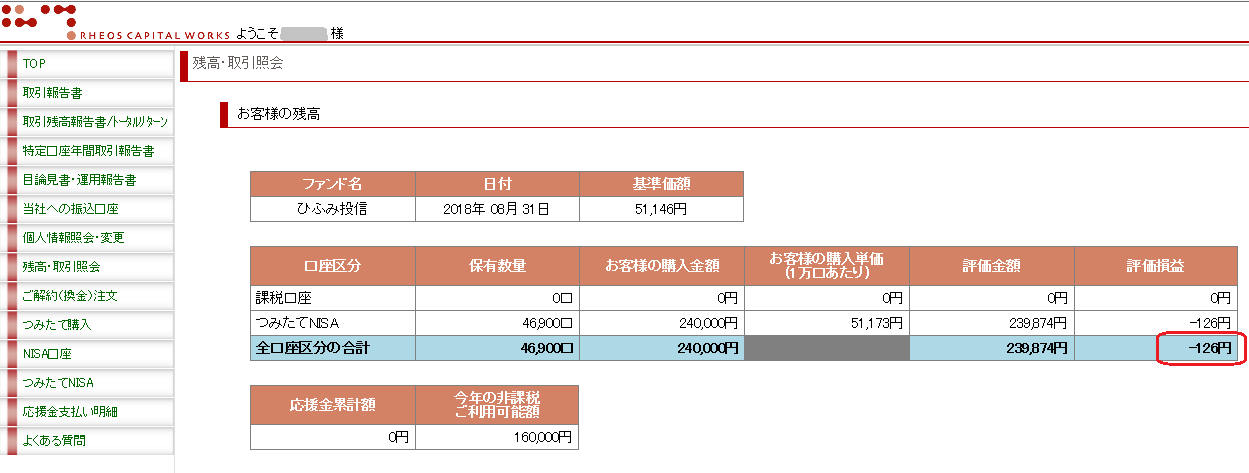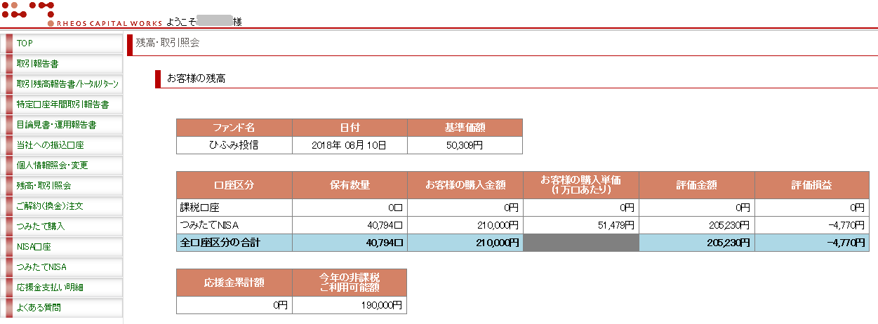 次は、積み立てNISA口座の ひふみ投信 です。