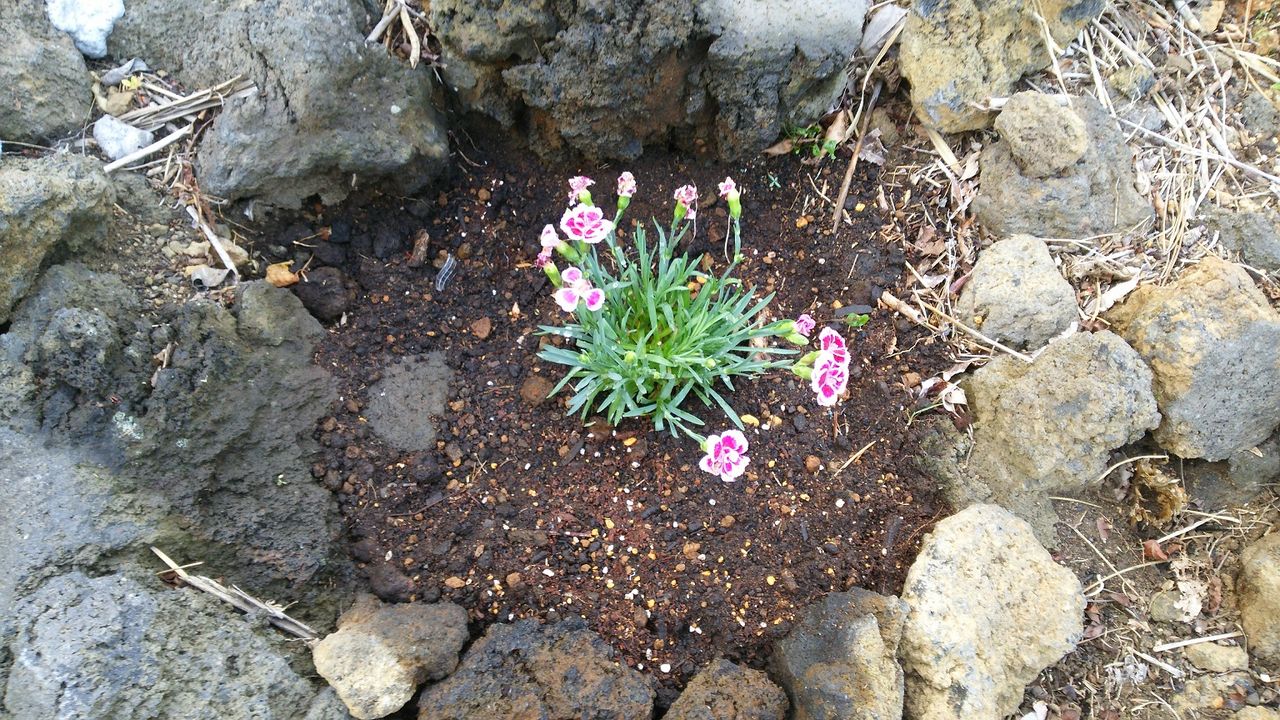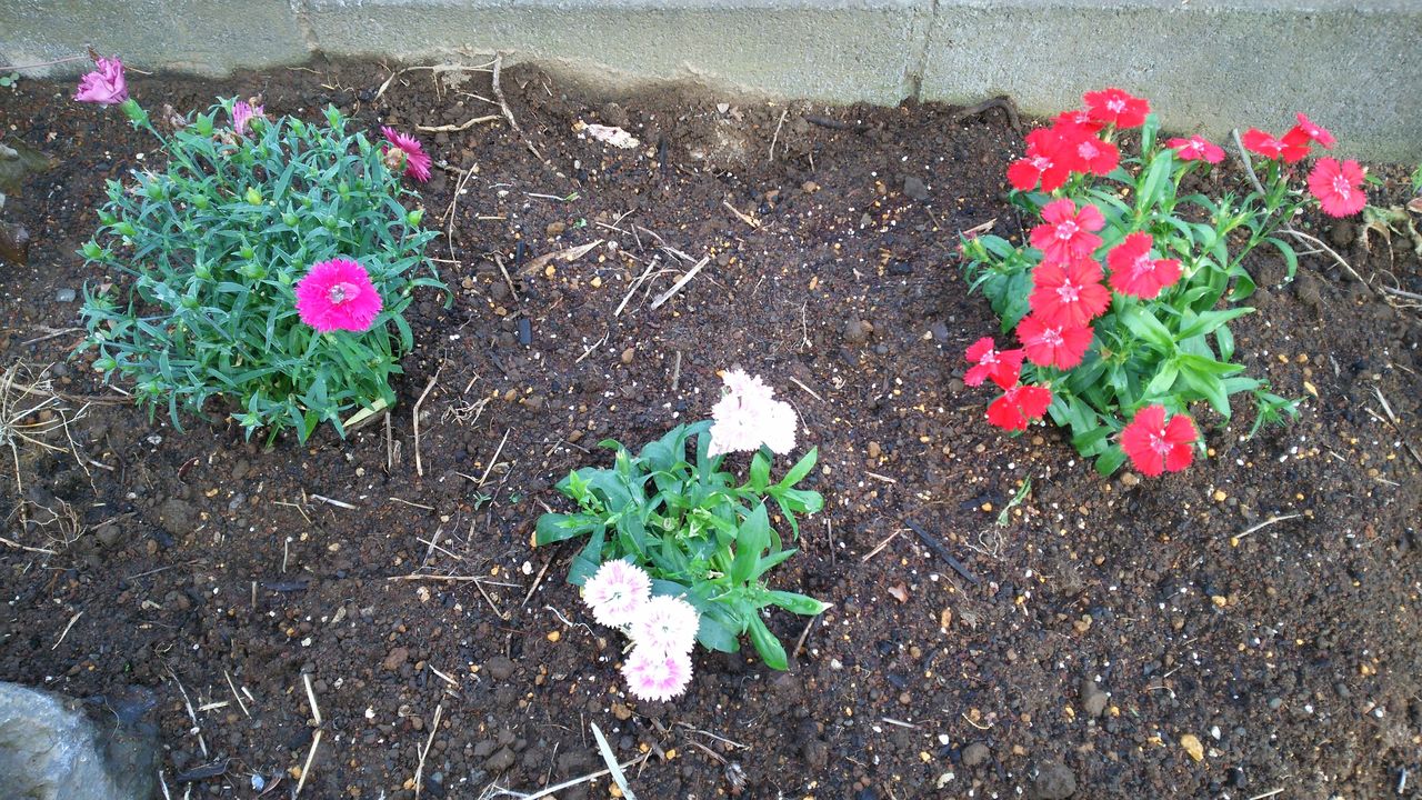 先日、ホームセンターで購入したピンクキッスとナデシコを庭に植えました。ピンクキッス 2ポットは、石積みのポケットです。