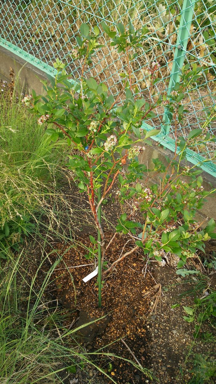 庭にブルーベリーが2本あります。ブルーベリー用の酸性の土を根本近くに盛りました。