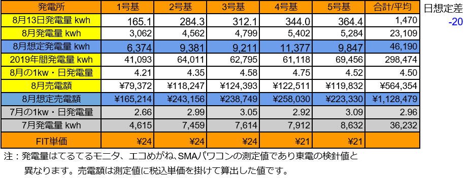 それでは、12/16~17の発電量です。(各発電所の仕様はこちらです)