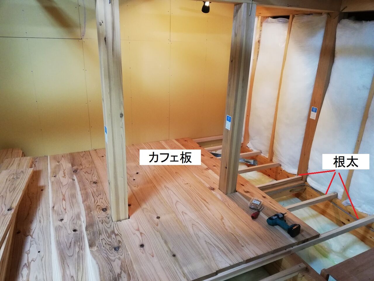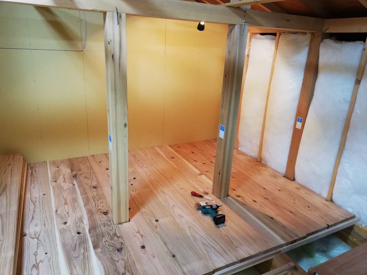 今日はこれで終了です。あとは手前側の床張りが残っています。