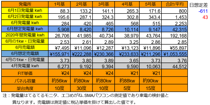 それでは、2/25~2/26の発電量です。(各発電所の仕様はこちらです)