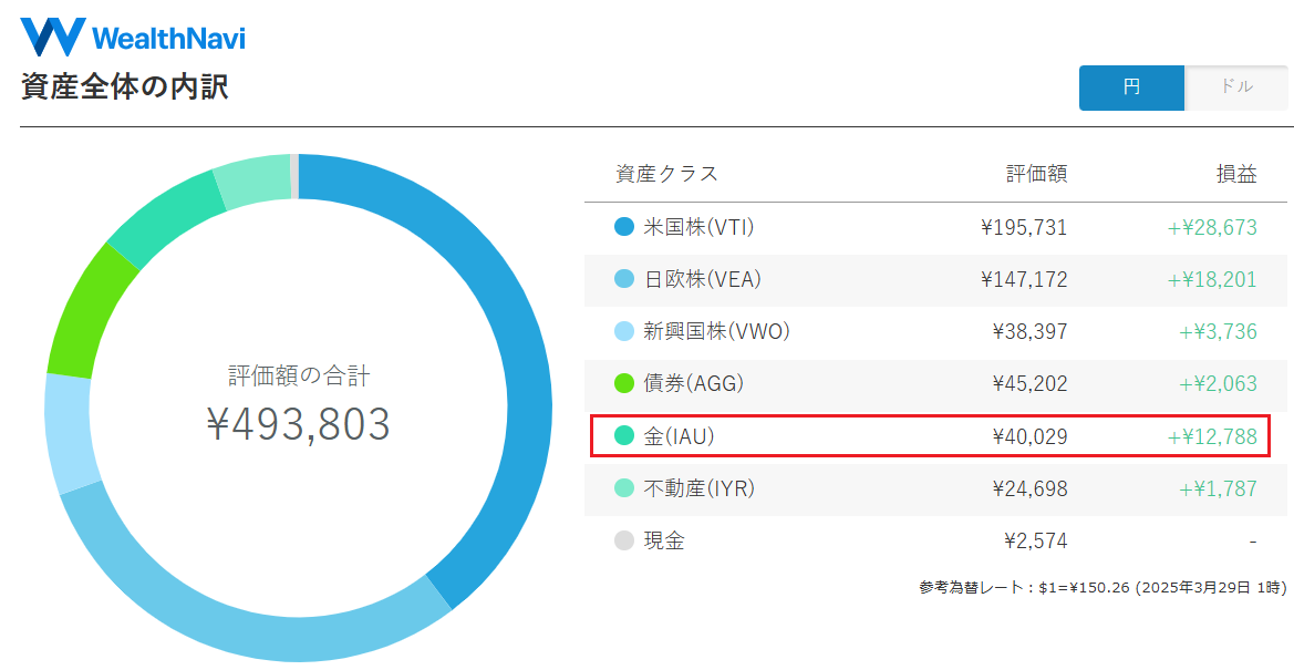 次は、2017年11月に開始したWealthNaviの金保有額です。
