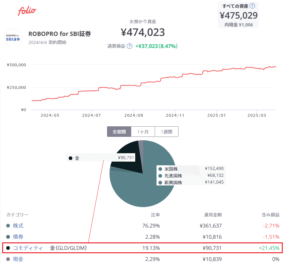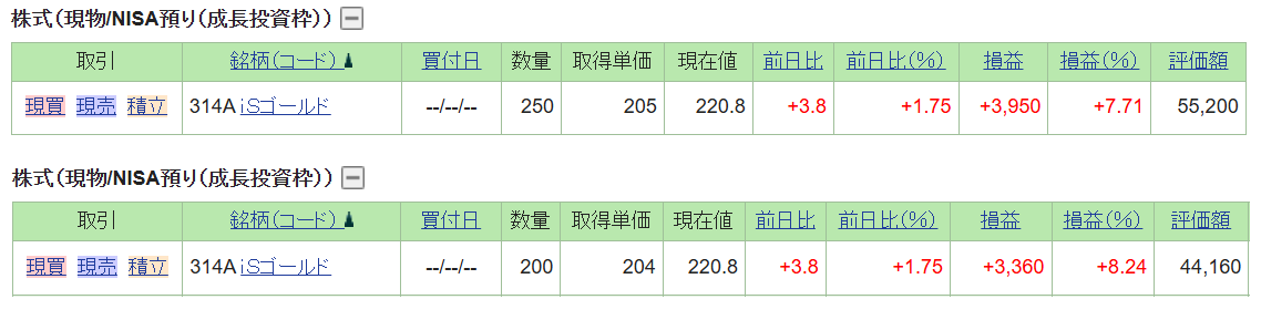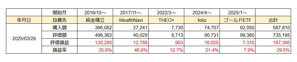 また、その他にロボアドやゴールドETFでも金を保有していますが、全体でいくら保有しているのか把握していません。