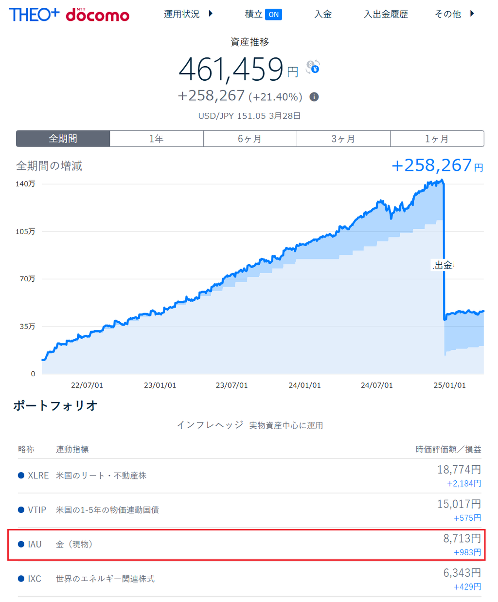 THEO+は金の保有比率がちょっと少ないですね・・・